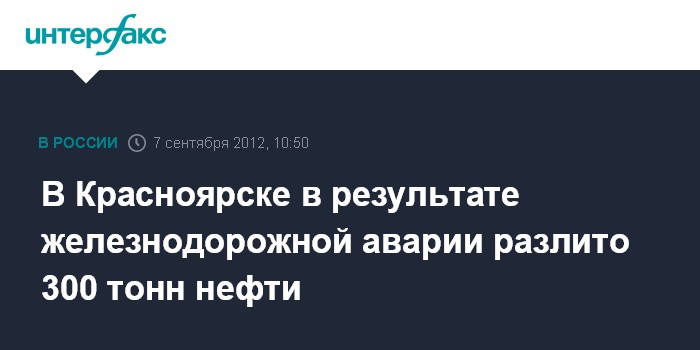 В Красноярске в результате железнодорожной аварии разлито 300 тонн нефти