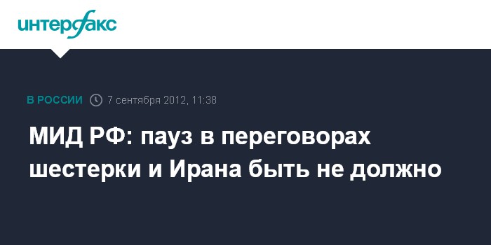 Москва. 7 сентября. INTERFAX.RU - Высокопоставленный российский дипломат выступил против паузы в переговорном процессе между шестеркой международных посредников и Ираном по ядерной проблеме.