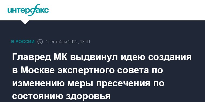 Главред МК выдвинул идею создания в Москве экспертного совета по изменению меры пресечения по состоянию здоровья