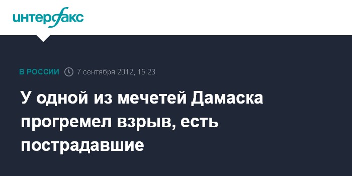 Бейрут. 7 сентября. INTERFAX.RU - Взрыв прогремел в пятницу у мечети в Дамаске, сообщает сирийское государственное телевидение.