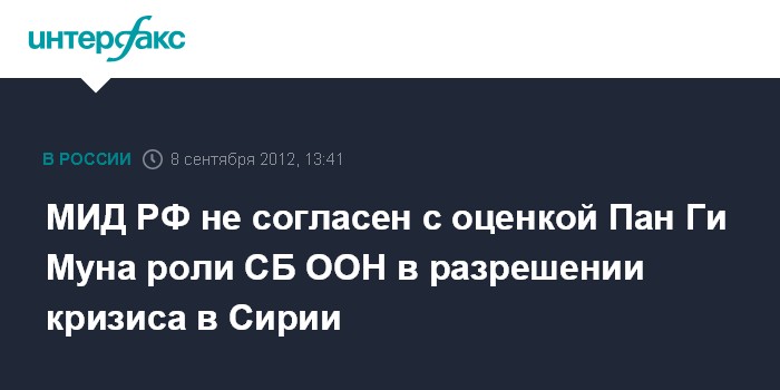 МИД РФ не согласен с оценкой Пан Ги Муна роли СБ ООН в разрешении кризиса в Сирии
