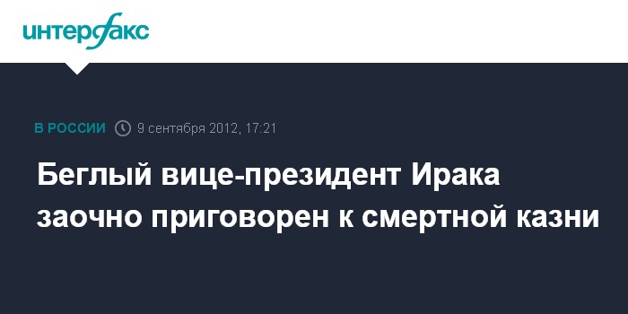 Багдад. 9 сентября. INTERFAX.RU - Суд Ирака заочно приговорил беглого иракского вице-президента Тарика аль-Хашими к казни через повешение.