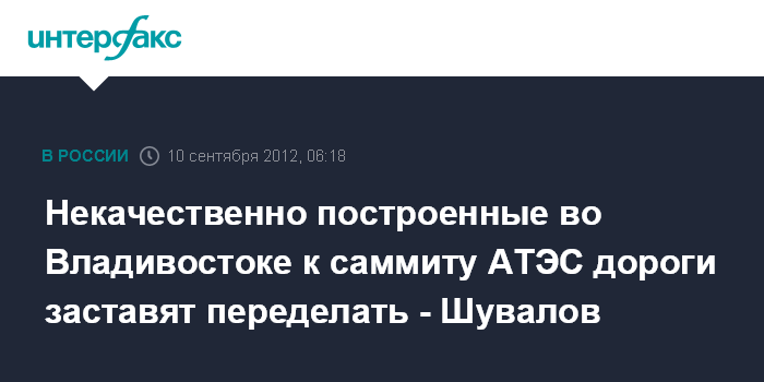 Владивосток. 10 сентября. ИНТЕРФАКС - ДАЛЬНИЙ ВОСТОК - Первый вице-премьер российского правительства Игорь Шувалов во Владивостоке заявил, что у него есть претензии к качеству дорог, построенных в столице Приморья к саммиту АТЭС.