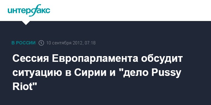 Страсбург. 10 сентября. INTERFAX.RU - Положение в Сирии и события в России, в том числе дело "Pussy Riot", будут в числе главных внешнеполитических тем дискуссии на открывающейся в понедельник в Страсбурге пленарной сессии Европарламента.