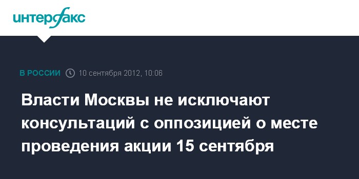 Власти Москвы не исключают консультаций с оппозицией о месте проведения акции 15 сентября