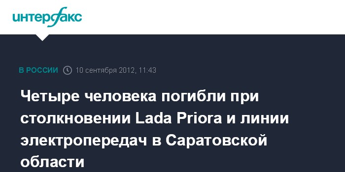 Четыре человека погибли при столкновении Lada Priora и линии электропередач в Саратовской области