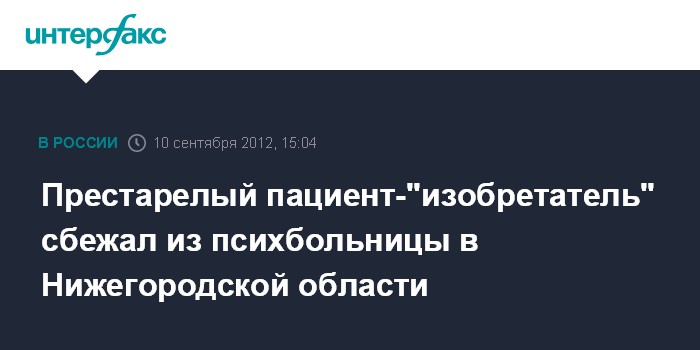 Престарелый пациент-"изобретатель" сбежал из психбольницы в Нижегородской области