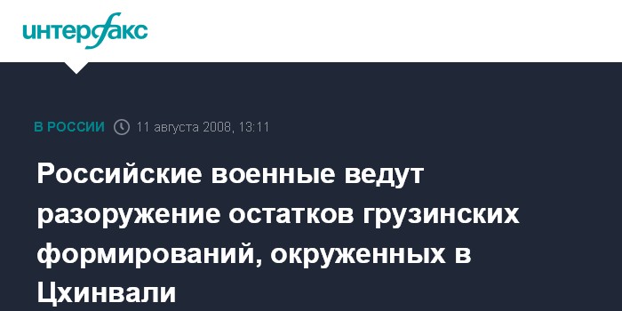 Российские военные ведут разоружение остатков грузинских формирований, окруженных в Цхинвали