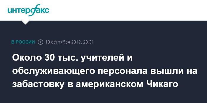 Вашингтон. 10 сентября. INTERFA.RU - По меньшей мере, 30 тыс. учителей и обслуживающего персонала вышли на массовую забастовку в американском городе Чикаго, сообщил в понедельник американский телеканал CNN.