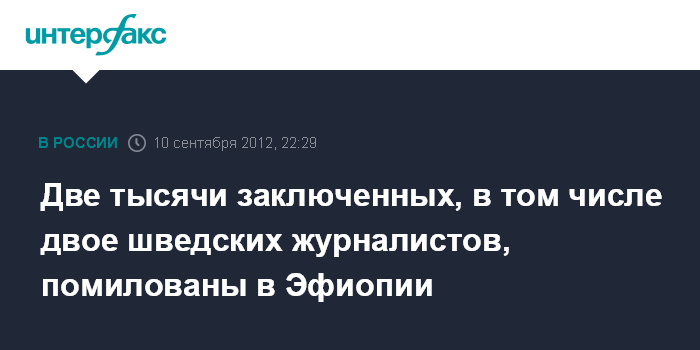 Две тысячи заключенных, в том числе двое шведских журналистов, помилованы в Эфиопии