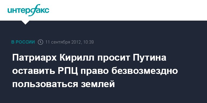 Патриарх Кирилл просит Путина оставить РПЦ право безвозмездно пользоваться землей