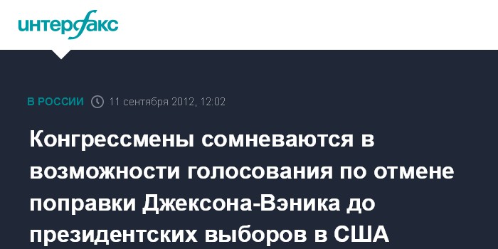 Газета отмечает, что республиканцы надеются на рассмотрение законопроекта об отмене поправки Джексона-Вэника в палате представителей в срочном порядке. В этом случае для его принятия потребуется одобрение двух третей членов нижней палаты Конгресса, в том числе значительного числа демократов.