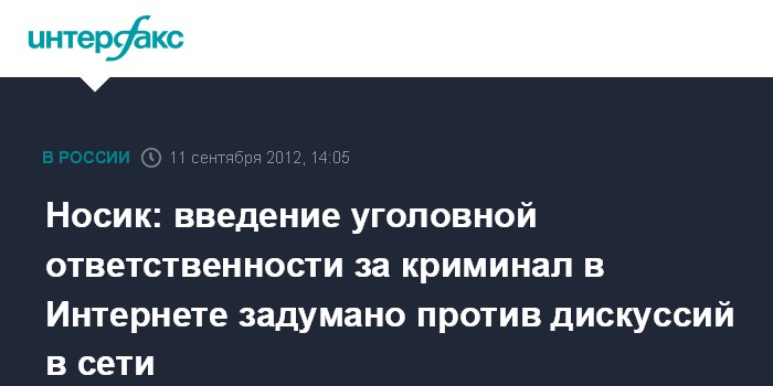 Носик: введение уголовной ответственности за криминал в Интернете задумано против дискуссий в сети