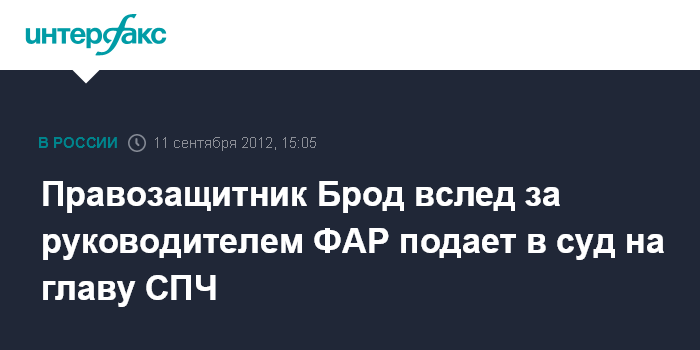 Правозащитник Брод вслед за руководителем ФАР подает в суд на главу СПЧ