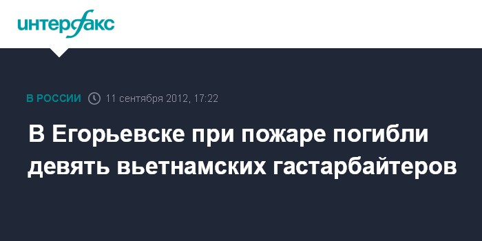Все погибшие в Егорьевске на пожаре гастарбайтеры были гражданами Вьетнама, сообщил "Интерфаксу" источник в правоохранительных органах города. "В настоящее время удалось установить гражданство погибших, все они приехали в Россию из Вьетнама и, предположительно, нелегально трудились в пошивочном цеху", - отметил источник.