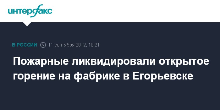 Москва. 11 сентября. INTERFAX.RU - Пожарным удалось справиться с возгоранием на нелегальной пошивочной фабрике в подмосковном Егорьевске, сообщили "Интерфаксу" в пресс-службе ГУ МЧС по Московской области.