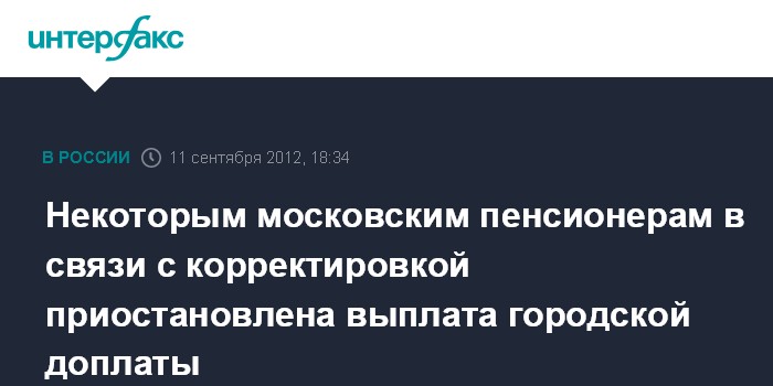 Как сообщили "Интерфаксу" в пресс-службе департамента, во вторник некоторым пенсионерам, числящихся в базе данных органах социальной защиты населения неработающими, выплата городской доплаты к пенсий приостановлена в связи с ее корректировкой с учетом страховых взносов.