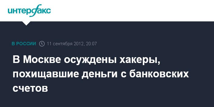 Москва. 11 сентября. INTERFAX.RU - Хакеры, воровавшие деньги у клиентов крупного российского банка, впервые предстали перед судом, который приговорил их к условным срокам и крупным штрафам, сообщили "Интерфаксу" в пресс-службе Следственного департамента МВД России.