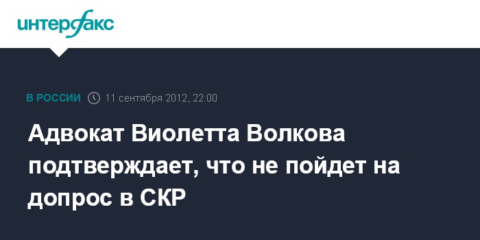 Москва. 11 сентября. INTERFAX.RU - Адвокат участницы панк-группы Pussy Riot Виолетта Волкова подтвердила, что не явится в СКР 12 сентября для допроса в качестве свидетеля по делу о массовых беспорядках на Болотной площади.