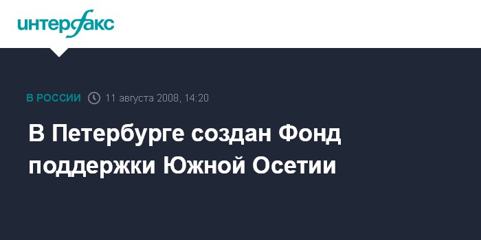 Санкт-Петербург. 11 августа. INTERFAX.RU - В Санкт-Петербурге создан Фонд поддержки граждан, пострадавшим в результате военных действий Грузии против Южной Осетии.