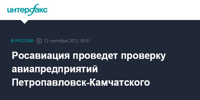 Москва. 12 сентября. INTERFAX.RU - Росавиация проведет проверку организации летной работы и эксплуатации воздушных судов в "Петропавловск-Камчатском авиационном предприятии", самолет которого потерпел авиакатастрофу в среду, сообщил "Интерфаксу" представитель ведомства.