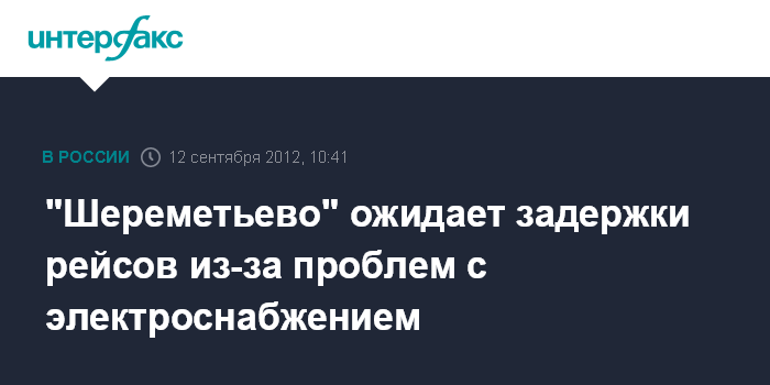 Москва. 12 сентября. INTERFAX.RU - Международный аэропорт "Шереметьево" ожидает задержки рейсов в терминале D из-за проблем со снабжением электричеством, сообщили "Интерфаксу" в пресс-службе аэропорта.