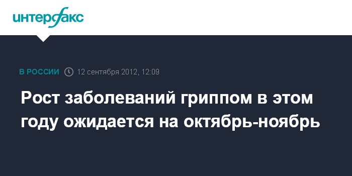 Москва. 12 сентября. INTERFAX.RU - В Минздраве прогнозируют рост заболеваний гриппом в октябре-ноябре этого года, сообщил руководитель Роспотребнадзора, главный государственный санитарный врач РФ Геннадий Онищенко.