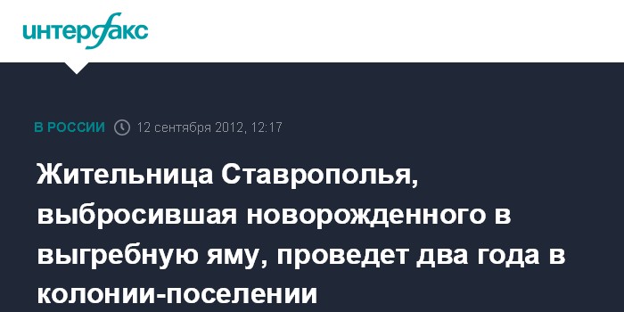Пятигорск. 12 сентября. INTERFAX.RU - Суд в Ставропольском крае признал 22-летнюю жительницу Труновского района Наталью Шевченко виновной в убийстве своего новорожденного ребенка, сообщает региональное управление СК РФ в среду.
