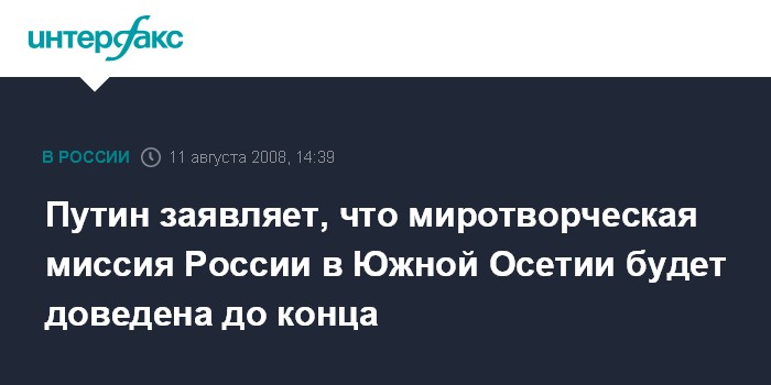 Путин заявляет, что миротворческая миссия России в Южной Осетии будет доведена до конца