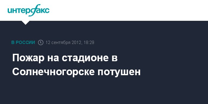 Москва. 12 сентября. INTERFAX.RU - Солнечногорские пожарные справились с возгоранием на стадионе "Вымпел", сообщили "Интерфаксу" в пресс-службе Центрального регионального центра МЧС России.