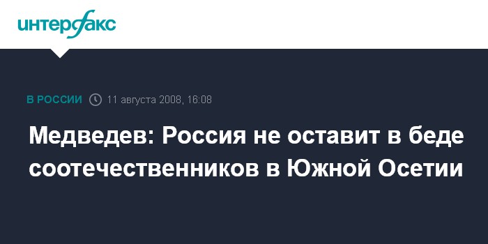 Медведев: Россия не оставит в беде соотечественников в Южной Осетии