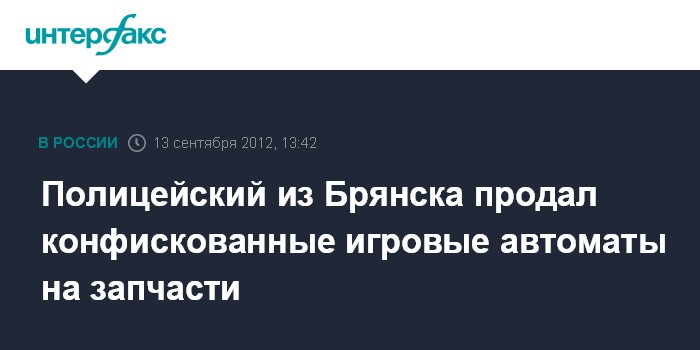Брянск. 13 сентября. INTERFAX.RU - В брянской полиции решается вопрос об увольнении местного участкового, который продал своему знакомому более 10 конфискованных игровых автоматов, сообщает пресс-служба регионального УМВД в четверг.