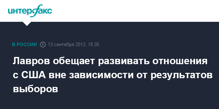 "Вне зависимости от итогов (избирательного марафона) мы готовы к развитию политического диалога с США с той степенью интенсивности, к какой будут готовы американские коллеги", - сказал главы МИД РФ Сергей Лавров в интервью журналу "Международная жизнь".
