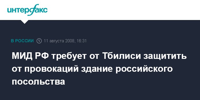 Баку. 11 августа. INTERFAX.RU - Министерство иностранных дел России потребовало от грузинских властей принятия мер по недопущению провокационных действий в отношении дипмиссии РФ в Тбилиси.
