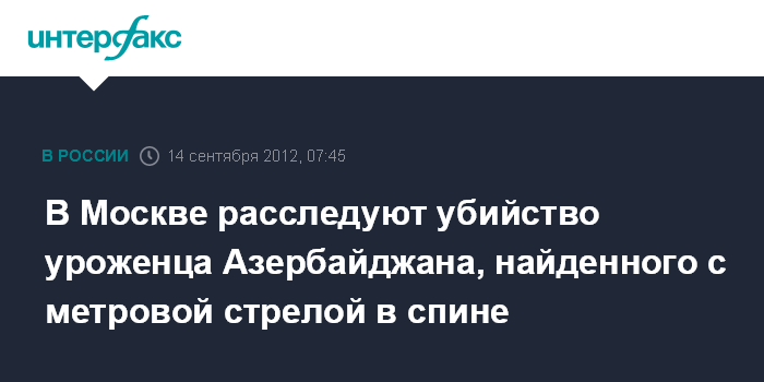В Москве расследуют убийство уроженца Азербайджана, найденного с метровой стрелой в спине