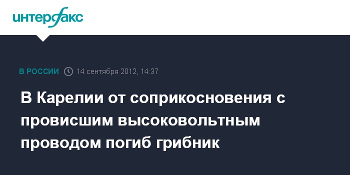 Петрозаводск. 14 сентября. INTERFAX.RU - В Карелии возбуждено уголовное дело по факту смерти местного жителя от поражения электрическим током, сообщили "Интерфаксу" в республиканском управлении Следственного комитета.