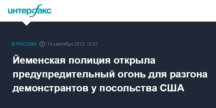 Дубай. 14 сентября. INTERFAX.RU - Йеменские силы безопасности открыли предупредительный огонь и использовали водометы для разгона толпы, пытающейся проникнуть в посольства США в столице страны Сане, сообщает в пятницу телеканал "Аль-Джазира".
