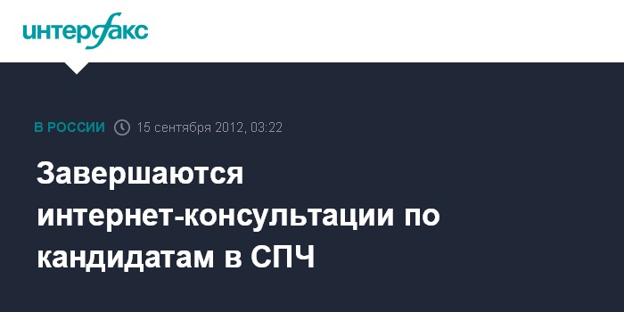Москва. 15 сентября. ИНТЕРФАКС - Общественные интернет-консультации по кандидатам на вакантные места в президентском совете по правам человека (СПЧ) завершаются в субботу, 15 сентября.