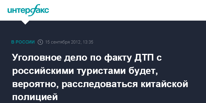 Уголовное дело по факту ДТП с российскими туристами будет, вероятно, расследоваться китайской полицией