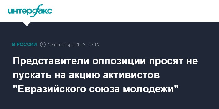 Представители оппозиции просят не пускать на акцию активистов "Евразийского союза молодежи"