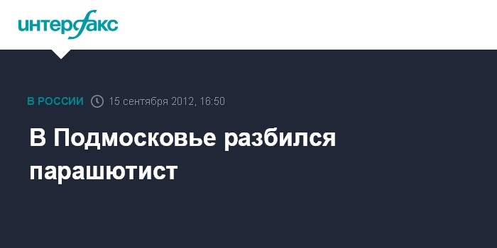 Москва. 15 сентября. INTERFAX.RU - Парашютист разбился в Чеховском районе Подмосковья, сообщил "Интерфаксу" источник в правоохранительных органах.