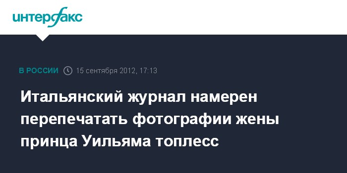 Рим. 15 сентября. INTERFAX.RU - Итальянский таблоид Chi сообщил о планах перепечатать фотографии полуобнаженной супруги британского принца Уильяма Кейт Миддлтон, сообщает в субботу АП.