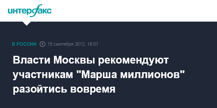 Власти Москвы рекомендуют участникам "Марша миллионов" разойтись вовремя