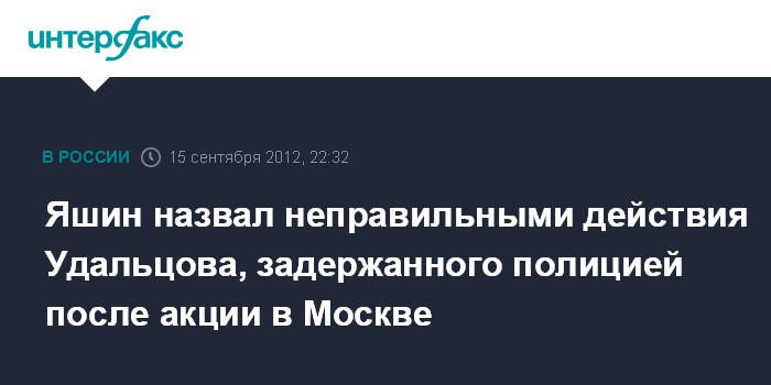 "Удальцова задержали. Зря он это устроил, я считаю. Такие вещи надо заранее обсуждать с другими организаторами, а не ставить перед фактом", - сообщил Яшин в Твиттере.