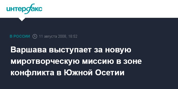 Москва. 11 августа. INTERFAX.RU - Польша выступает за изменение формата миротворческой миссии в зоне грузино-югоосетинского конфликта.
