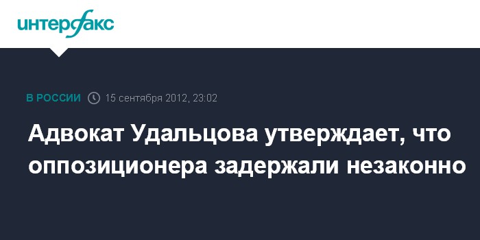 Москва. 15 сентября. INTERFAX.RU - Задержание лидера "Левого Фронта" Сергея Удальцова на проспекте Академика Сахарова в Москве за пять минут до официального окончания мероприятия незаконно, заявила адвокат Виолетта Волкова.