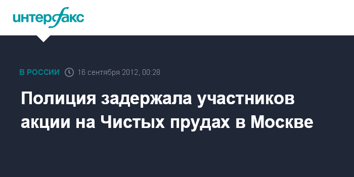 Москва. 16 сентября. INTERFAX.RU - Столичная полиция в ночь на воскресенье задержала участников "народных гуляний" на Чистопрудном бульваре у памятника казахскому поэту Абаю Кунанбаеву, которые были объявлены некоторыми активистами после окончания акции.