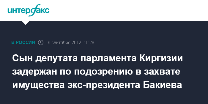 Сын депутата парламента Киргизии задержан по подозрению в захвате имущества экс-президента Бакиева