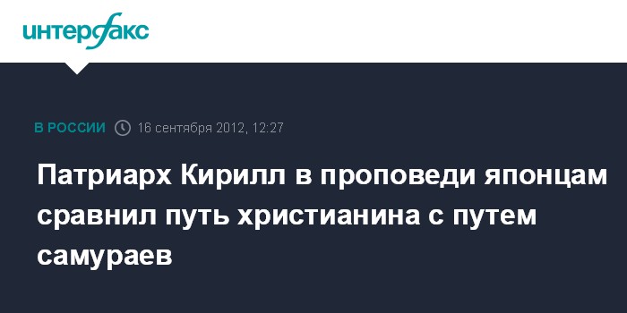 Патриарх Кирилл в проповеди японцам сравнил путь христианина с путем самураев