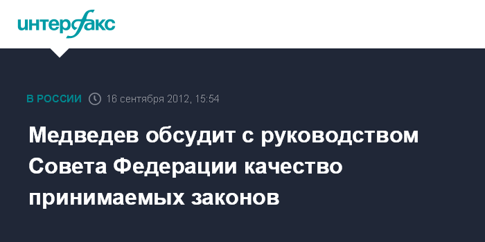 Медведев обсудит с руководством Совета Федерации качество принимаемых законов